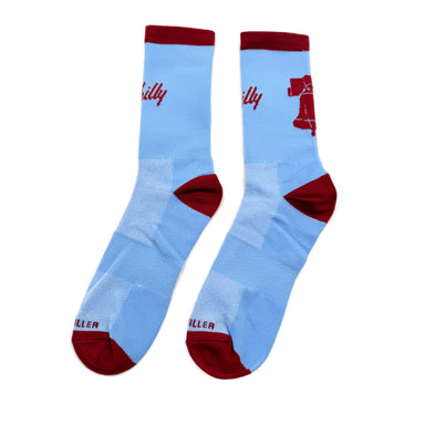 Introducing our new Calf Length Cycling Socks Made from lightweight fabric. Pairs with our entire Philly Retro Blue Jersey Collection! One Size Fi...